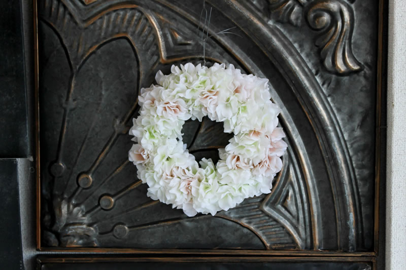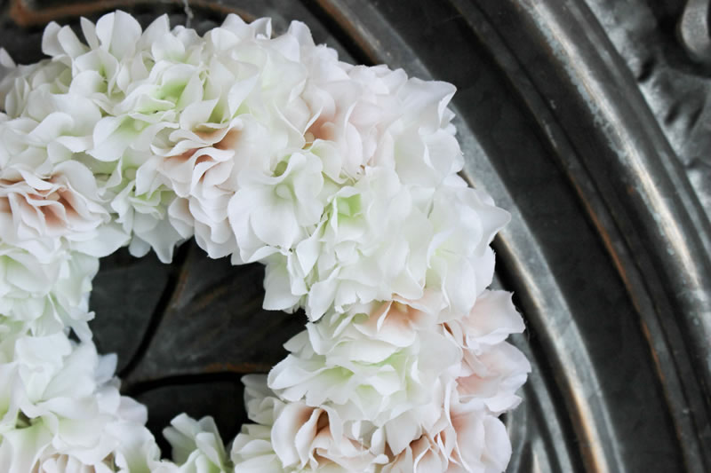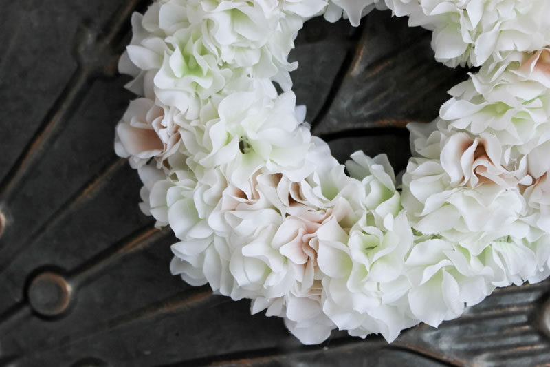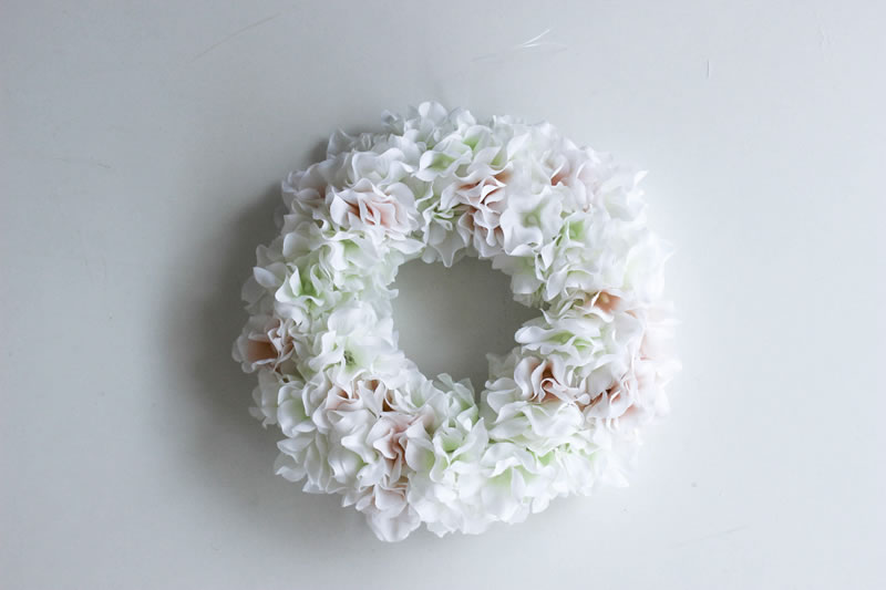 アジサイ白&ペールベージュ**フラワーリース15/アーティフィシャル(造花)