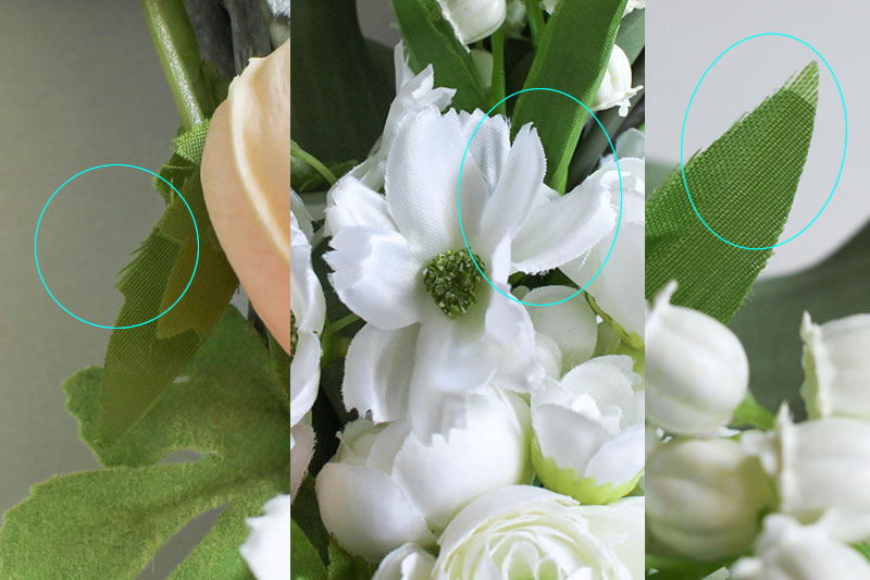 - アーティフィシャルフラワーは布などの素材を加工したもので、花びらに多少のほつれや切れ目の見られることがありますが、製品の特性によるもので不良品ではございません。明らかな損傷を除いて返品・交換はお受けできません。