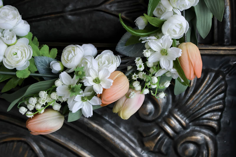 春の代表的な花をひとつのリースにまとめました。明るく暖かで穏やか色調は、どんなインテリアにもなじみ華やかな印象を与えてくれます。季節感を大切にするお店の装飾にいかがでしょうか。